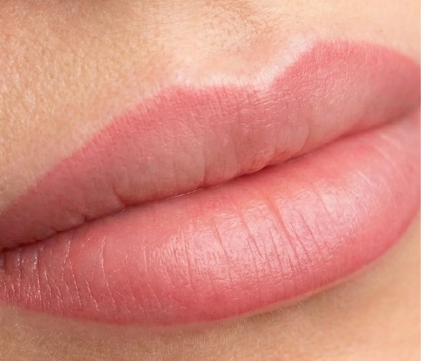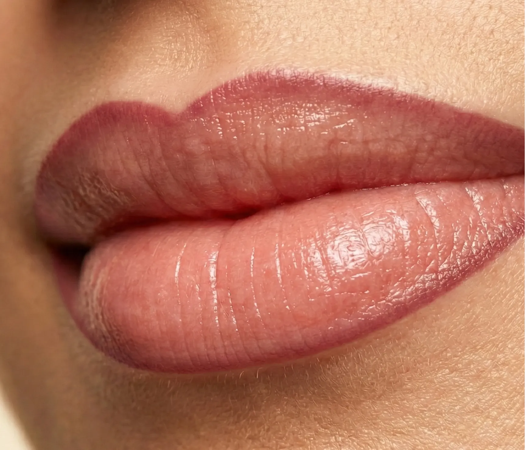 Klar definierter Lippenrand bei natürlich vorhandener Kontur und Lippenfarbe. Leichte Schattierung nur am Lippenrand.
