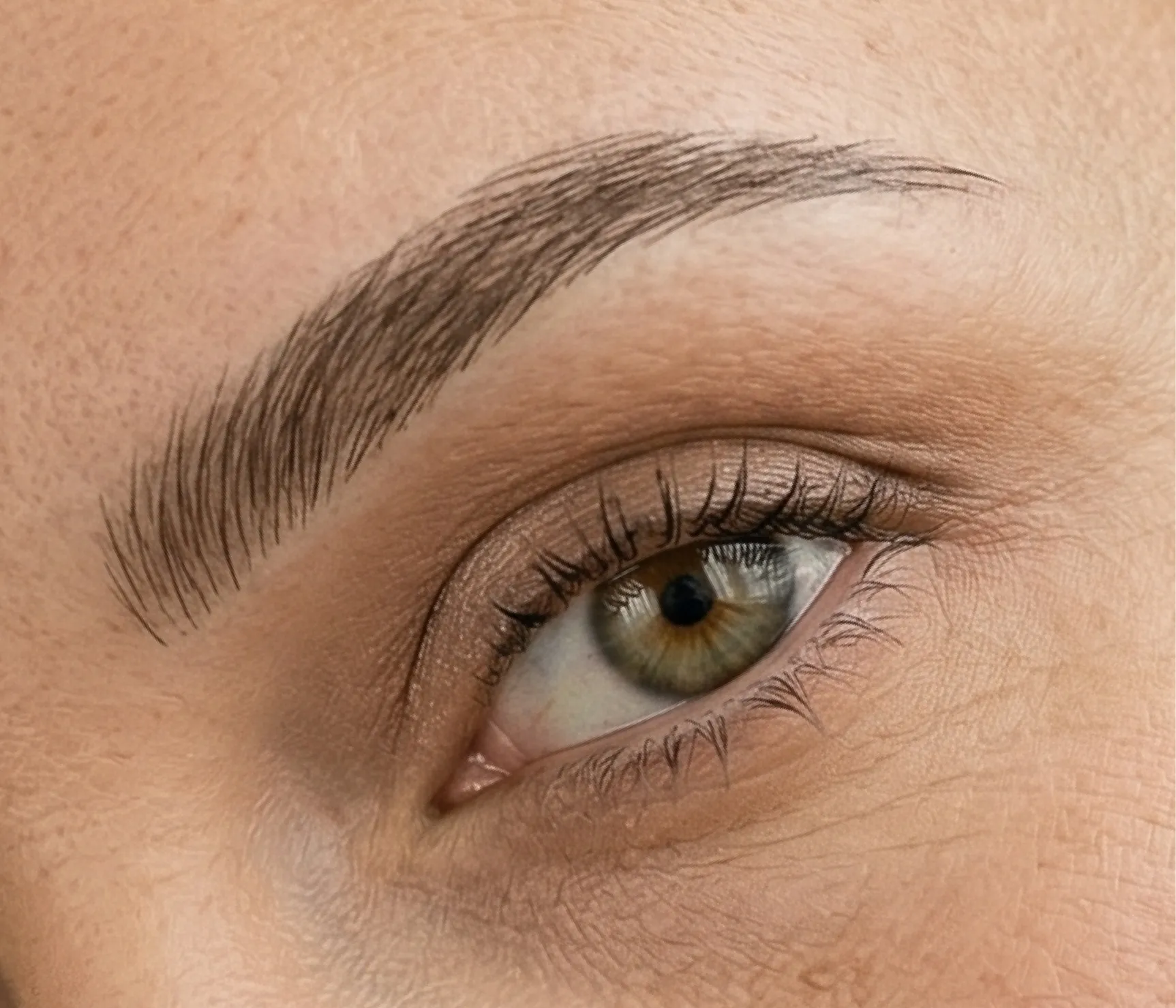 Feinste, manuell pigmentierte Härchen für maximal natürliche Augenbrauen, die sich perfekt in deine eigene Brauenform einfügen.